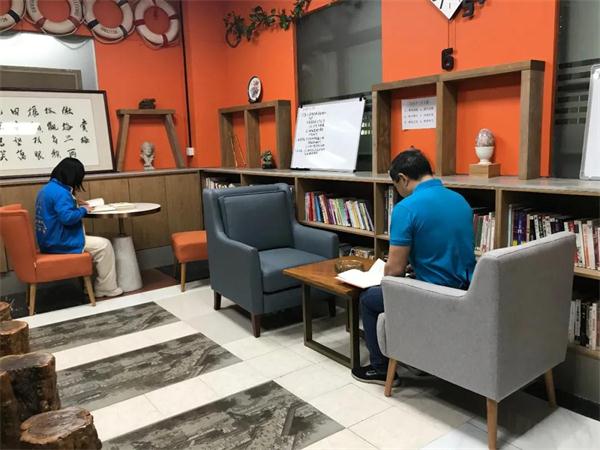 b. 設計師辦公室這面用傳統窗頁和原木并裝造型是由海德利小伙伴自己設計。
